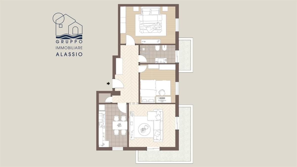 Apartment in the Ponente area of Alassio, 150 meters from the sea! With an entrance under Via Aurelia, convenient to all amenities, this approximately 90m2 apartment offers: - Living room with corner balcony - Separate eat-in kitchen - 2 double bedrooms - Bathroom with window The interior is in good condition, with attention to detail over the years. A renovation would make it even more contemporary and attractive. Excellent size, convenient to amenities, and excellent value. Don't miss out! Contact us for more information and to arrange a visit!