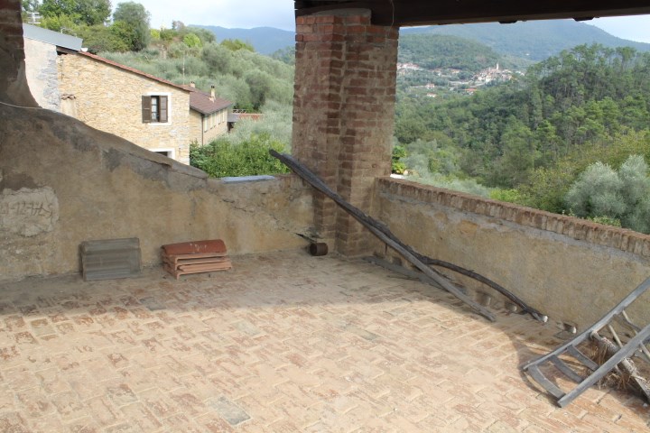 Garlenda, in the Castelli district, a semi-detached house of approximately 200 sq m spread over several levels requiring renovation. The ground floor features a cellar and a basement; the first floor comprises a living room, eat-in kitchen, three bedrooms, and a bathroom; and the second floor comprises a large attic room with a large terrace. The property includes a plot of land in front of the house suitable for parking and a garage of approximately 18 sq m.