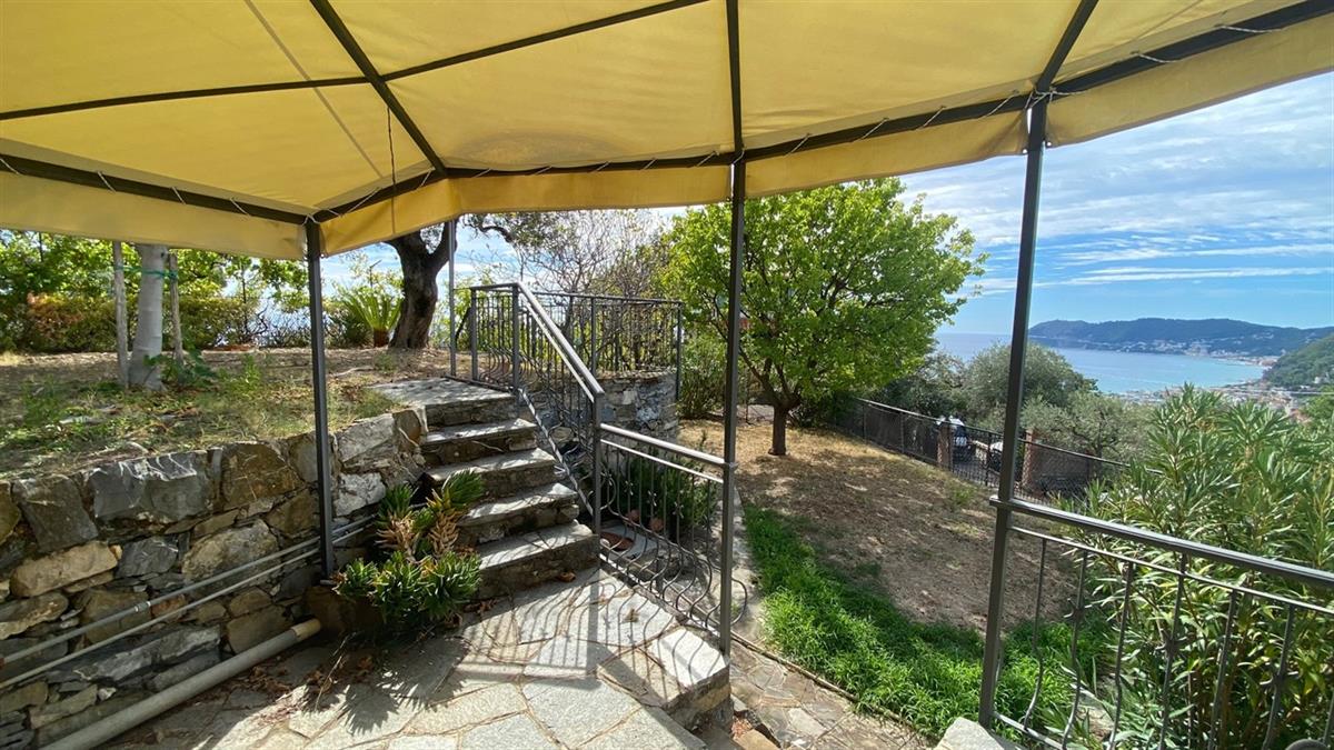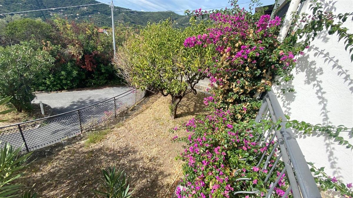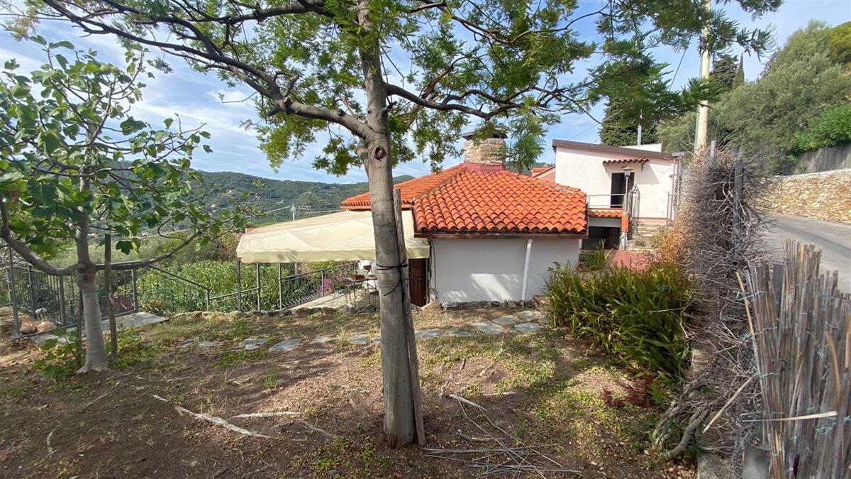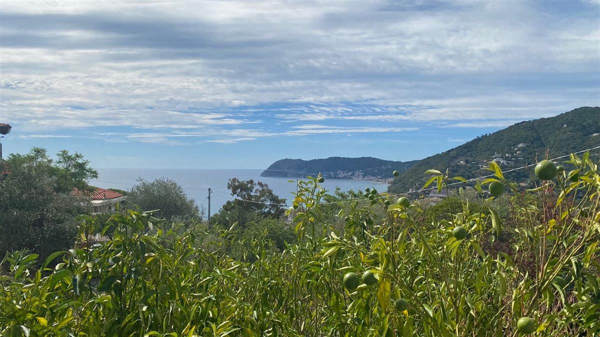 We are pleased to offer for sale this detached sea-view house with a private garden and garage, as well as another two-bedroom apartment with parking space, located within the same property but with separate subunits. These units are located on the first hill, on the sunny Via Rangè, just minutes from the sea by electric bicycle or scooter. The main property comprises approximately 120 square meters, comprising an entrance hall, a sea-view living room with kitchen and porch, two bedrooms, a single bedroom, a bathroom, a laundry room, and a walk-in closet. The property is surrounded by approximately 500 square meters of garden with sea views and a garage located under a terrace. The second unit, located on the same plot but with a separate entrance from the upper road, comprises another 50 square meters and comprises a living room with kitchenette and sea-view terrace, a bathroom, and a double bedroom with a window offering a poetic view of Capo Mele. Another uncovered parking space and a storage room complete the property. The house needs renovation, but has excellent potential. The main features of the house, besides its beautiful architecture, are the large terraces and gardens that surround it.