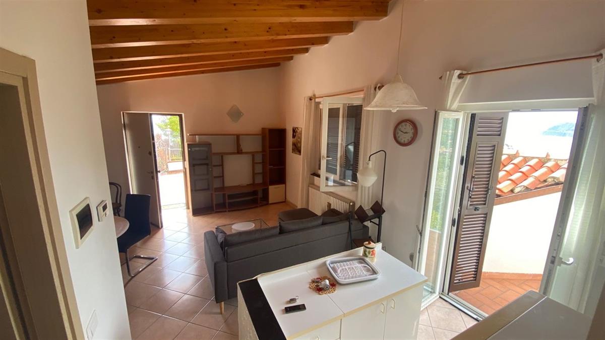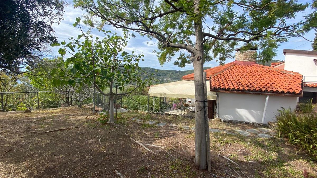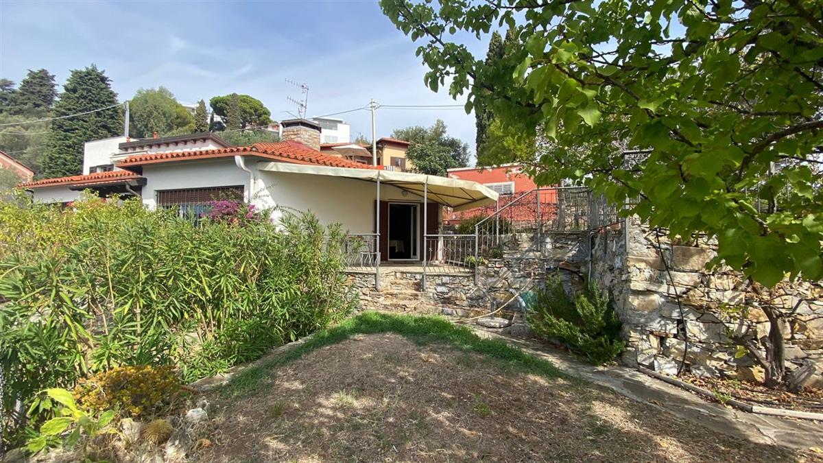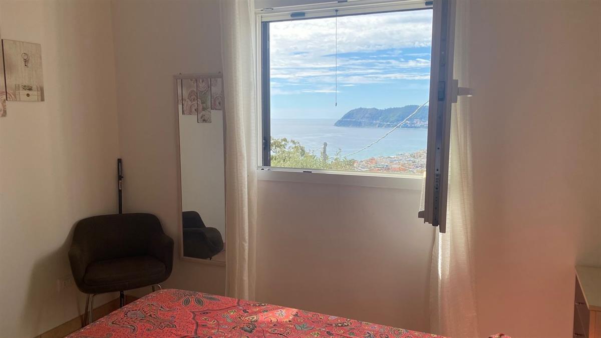 We are pleased to offer for sale this detached sea-view house with a private garden and garage, as well as another two-bedroom apartment with parking space, located within the same property but with separate subunits. These units are located on the first hill, on the sunny Via Rangè, just minutes from the sea by electric bicycle or scooter. The main property comprises approximately 120 square meters, comprising an entrance hall, a sea-view living room with kitchen and porch, two bedrooms, a single bedroom, a bathroom, a laundry room, and a walk-in closet. The property is surrounded by approximately 500 square meters of garden with sea views and a garage located under a terrace. The second unit, located on the same plot but with a separate entrance from the upper road, comprises another 50 square meters and comprises a living room with kitchenette and sea-view terrace, a bathroom, and a double bedroom with a window offering a poetic view of Capo Mele. Another uncovered parking space and a storage room complete the property. The house needs renovation, but has excellent potential. The main features of the house, besides its beautiful architecture, are the large terraces and gardens that surround it.