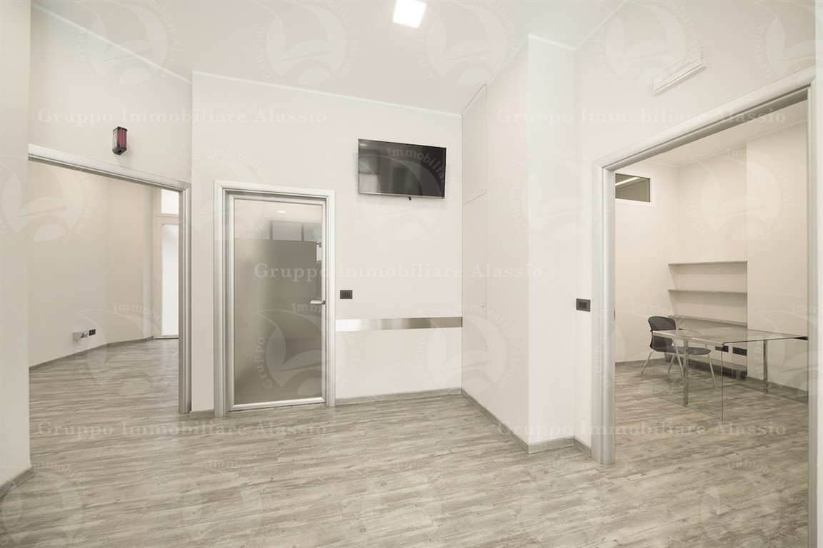 Alassio, in the center of town, in a high-traffic area, we offer for sale a vacant commercial space of approximately 100 square meters. The premises have been completely renovated with modern materials and technologies, making them ready for any type of use. The materials used are high-quality. The systems are compliant with standards, including those for medical equipment. Ducted air conditioning, controlled mechanical ventilation (CMV) system with "virus stop" activated carbon filters, full data network cabling with connections for wall-mounted advertising monitors, video projection system, burglar alarm and telephone systems, counter and reception area, etc. Asking price: €575,000.