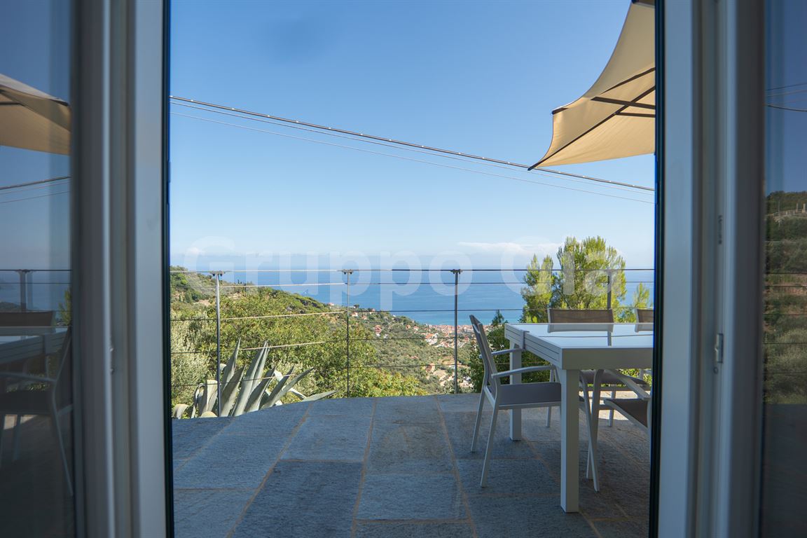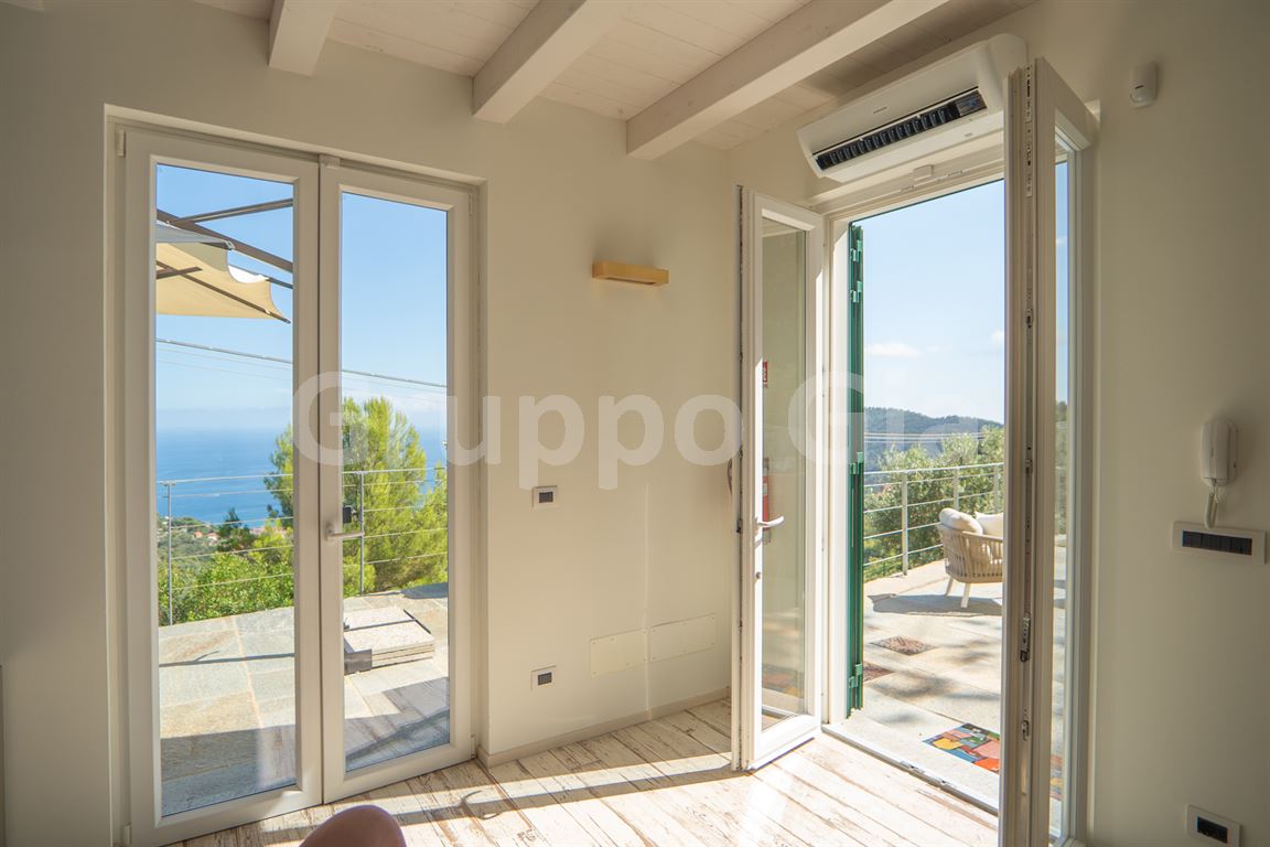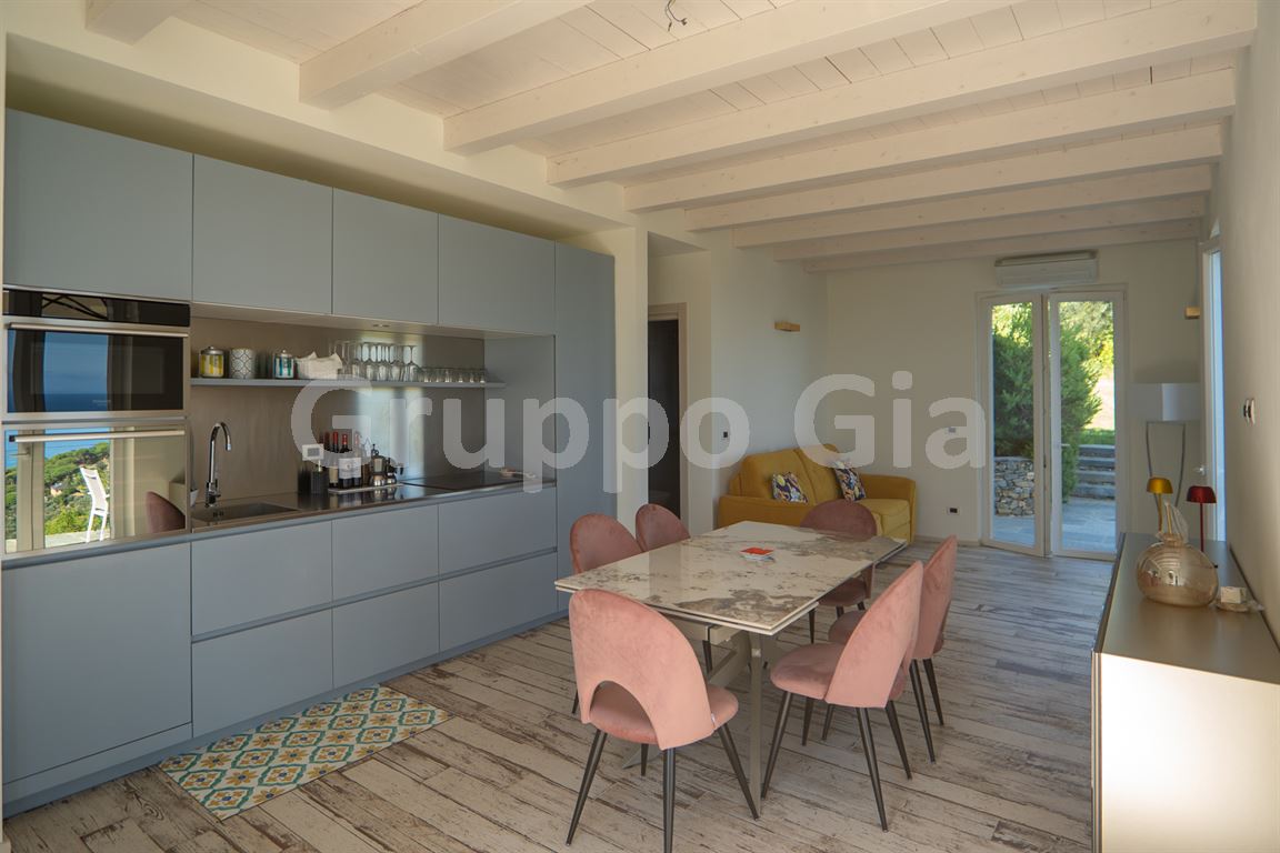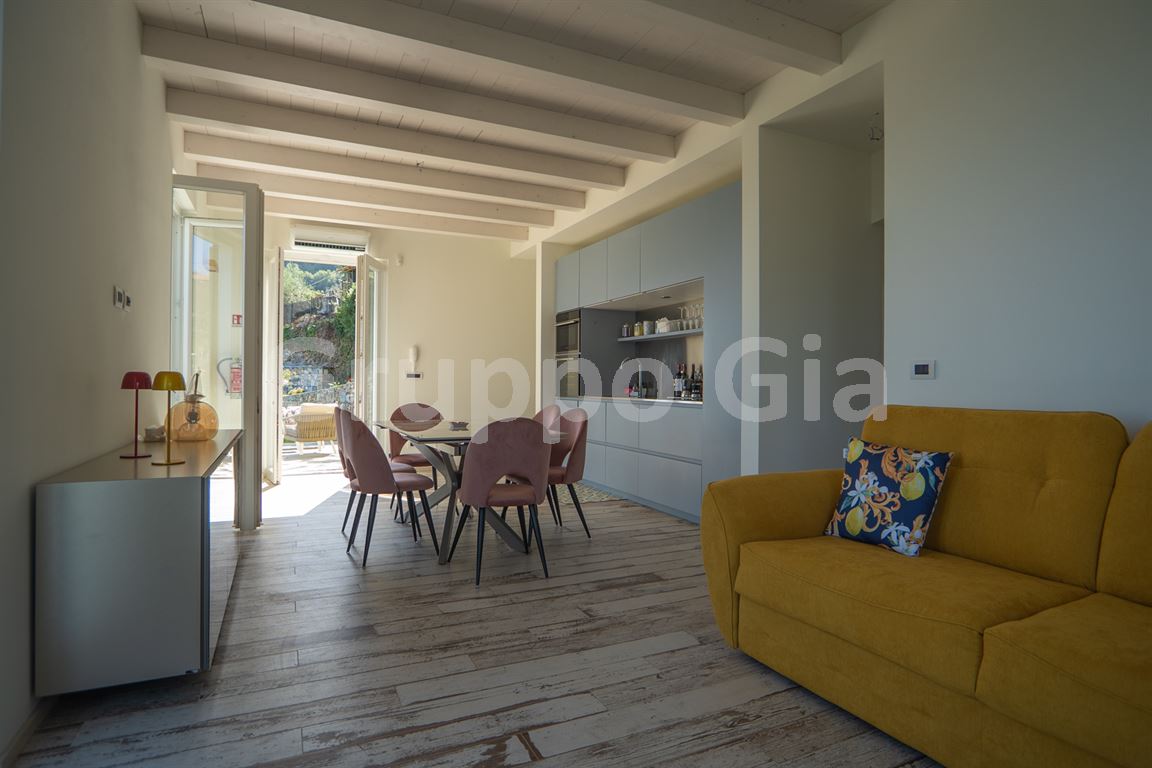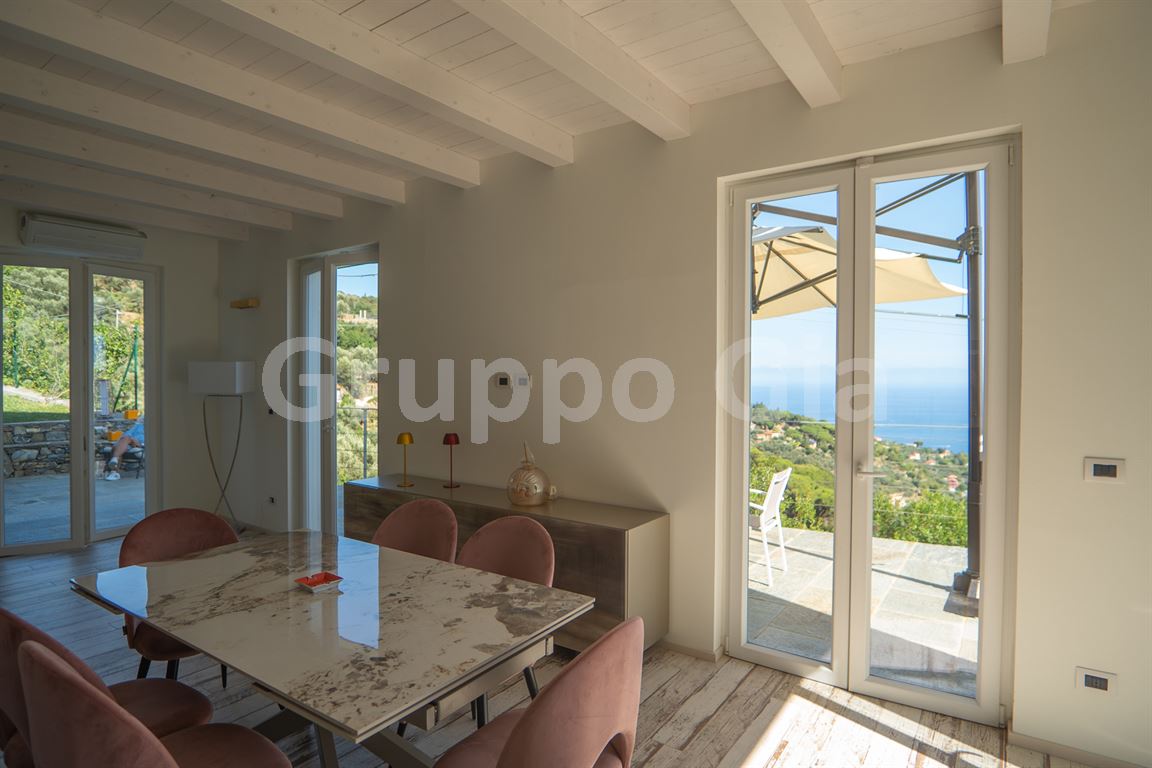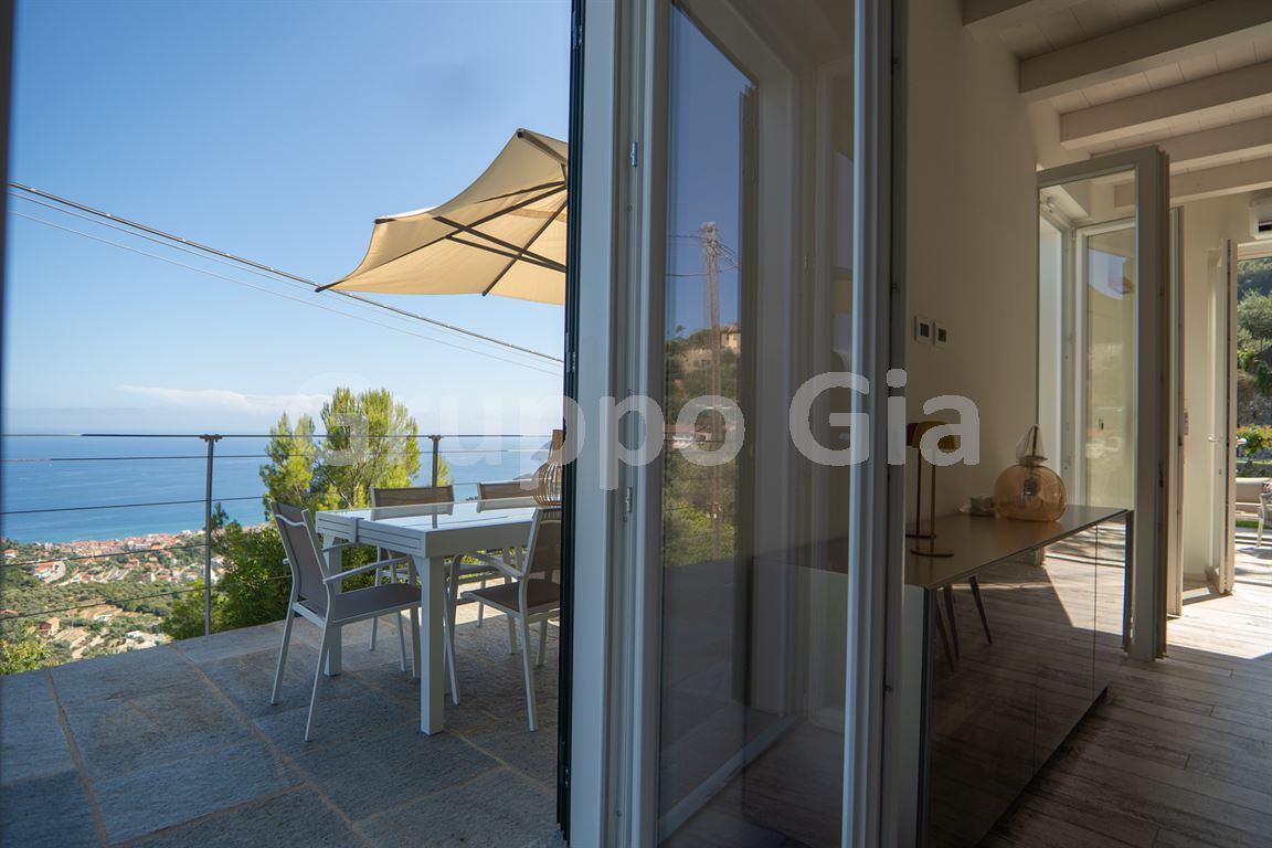 Imagine walking through the gates of this dream villa: an exclusive, completely renovated retreat, where every detail has been designed to exude emotion and beauty. A 1,000-square-meter garden opens before you, a private oasis suspended between the blue sea and the greenery of nature. Here you can choose to enjoy an al fresco lunch in the dedicated area, savoring the sea breeze, or indulge in relaxation in the lounge area, amidst Mediterranean scents and rejuvenating silence. The infinity pool seems to dive directly into the sea, offering breathtaking views from dawn to dusk. Inside, the spaces blend elegance and functionality. The ground floor welcomes you to a bright living area with an open-plan kitchen, the heart of the home, ideal for convivial dinners or intimate family gatherings. A modern, practical, and refined bathroom with shower completes the level. Going upstairs, the tranquility takes shape in the two large and bright double bedrooms, a modern bathroom enriched with a bathtub/shower to transform every daily gesture into pure pleasure. A double garage ensures convenience and privacy, while the entire property exudes comfort, style, and harmony with the surrounding landscape. This villa isn't just a home: it's a life experience, a place where you can be lulled by beauty and peace, with the sea always the protagonist, just a stone's throw from your dream of freedom.