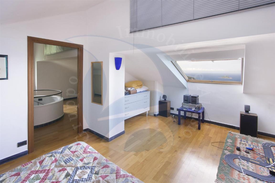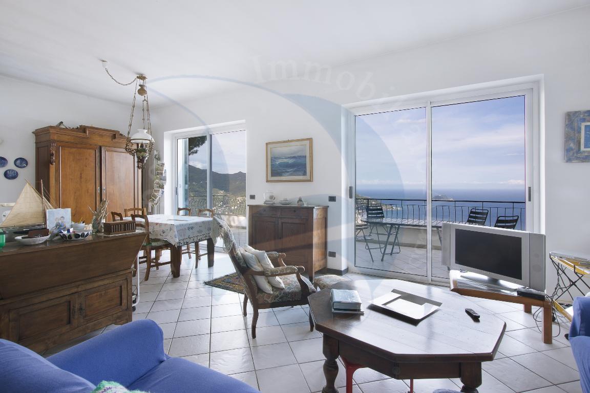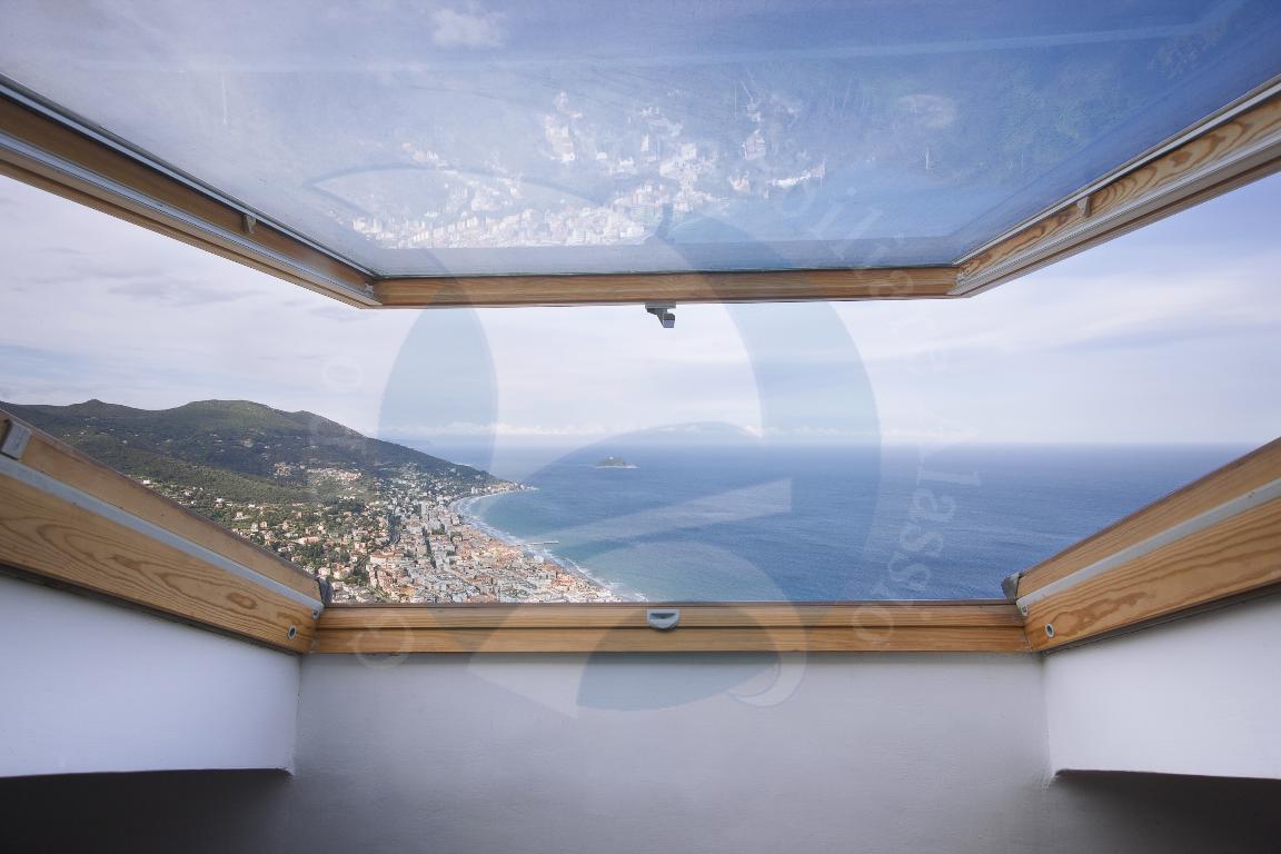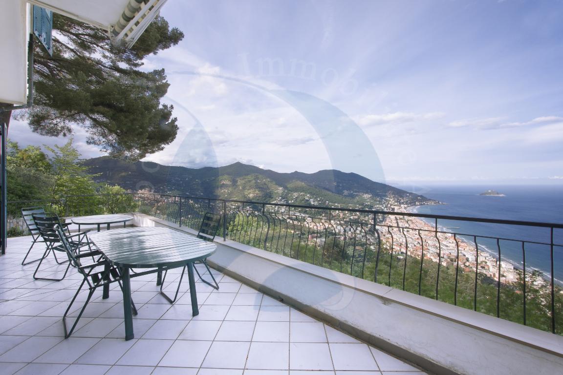 Alassio, on the western hill, in a dominant position, with views across the entire gulf, a large multi-level villa with three independent apartments is for sale. Surrounding land owned, private access road.