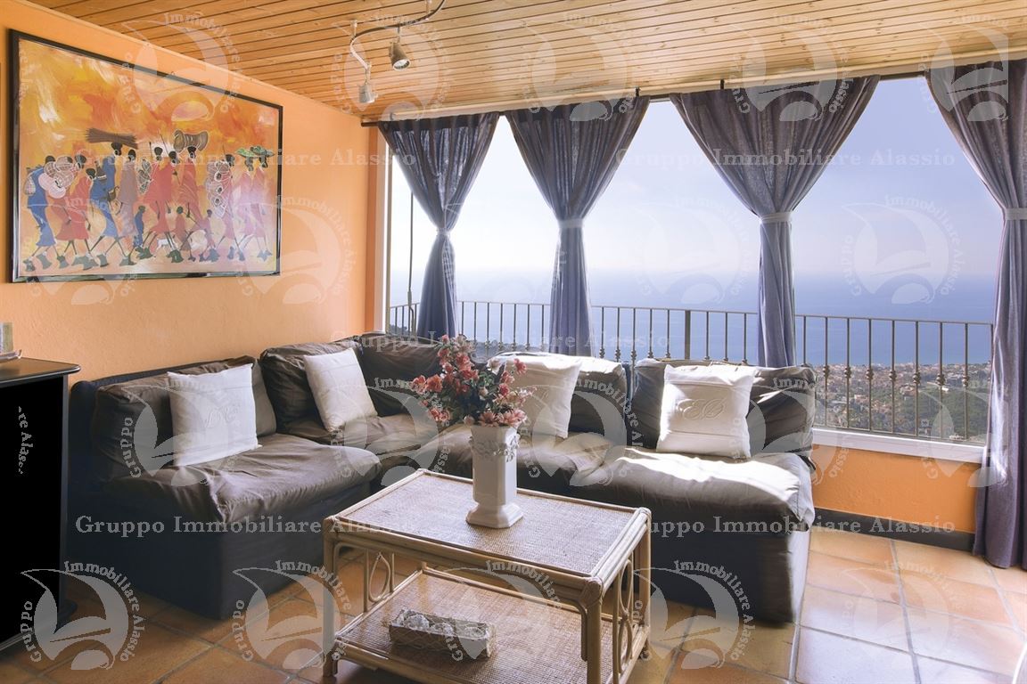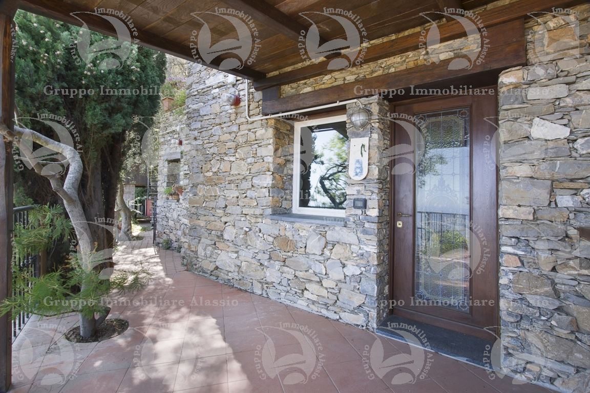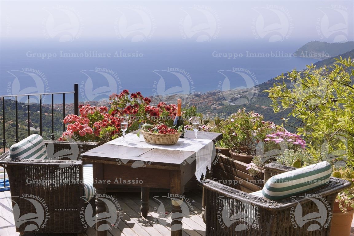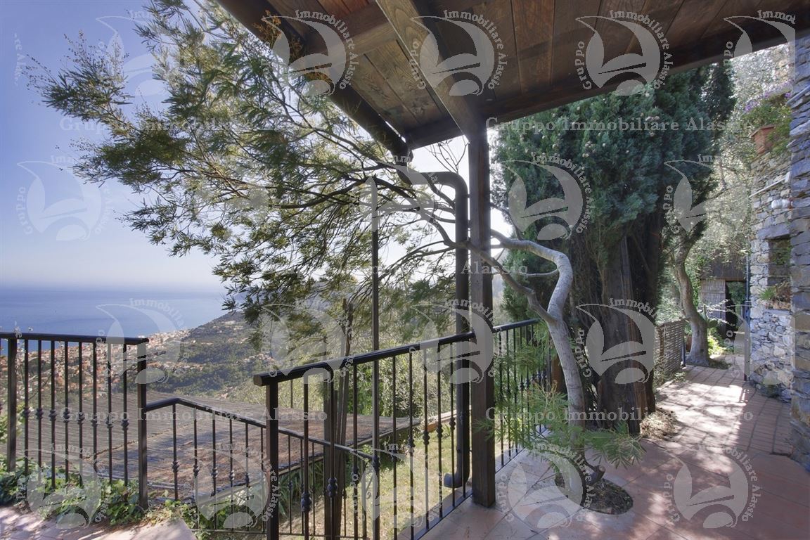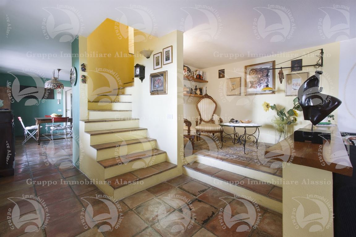 Alassio, on the hillside in the Vegliasco area, offers a multi-level villa. Originally a rustic stone building, it was completely renovated in 1981-82, preserving the original architecture and materials, primarily the exposed stone, completely chipped so that the cement used to reinforce it was not visible. Situated at 402 meters above sea level, it offers a stunning view of the Gulf of Alassio, bathed in sunlight from the early hours of the morning. From every corner of the villa, you can admire the marvelous view of the hillside stretching all the way to the sea. The doorsteps are split slate, the floors are period terracotta in the living area and solid wood in the bedrooms. The bathrooms and kitchens are tiled in Sardinian wax with double sinks and both a bathtub and shower. Three wood-burning fireplaces for romantic evenings by the fire, and a barbecue and pizza oven throughout the villa for carefree evenings with friends. The main villa measures 220 m², plus a 65 m² porch and 60 m² terrace. There is also a small 65 m² two-room apartment with a 30 m² terrace. A 50 m² basement room, plus a 30 m² terrace and a 10 m² terrace. The 600 m² plot of land is landscaped with numerous fruit and olive trees. A large cellar and a 55 m² double garage complete the property.