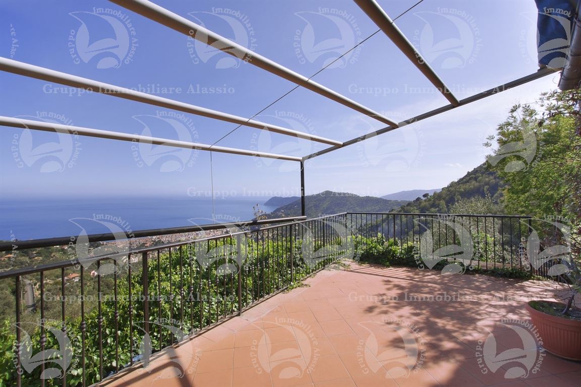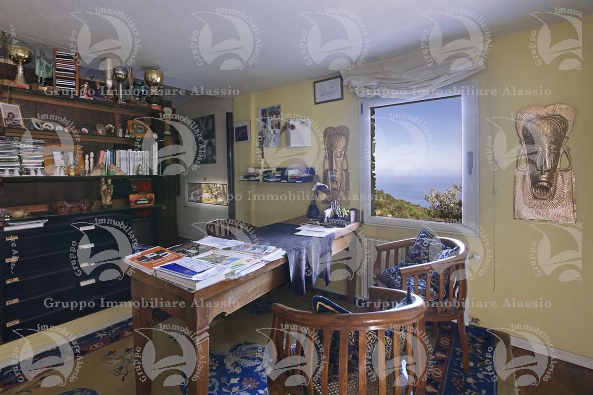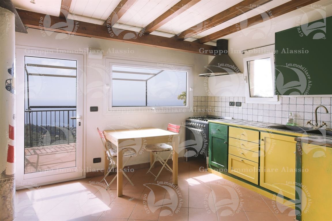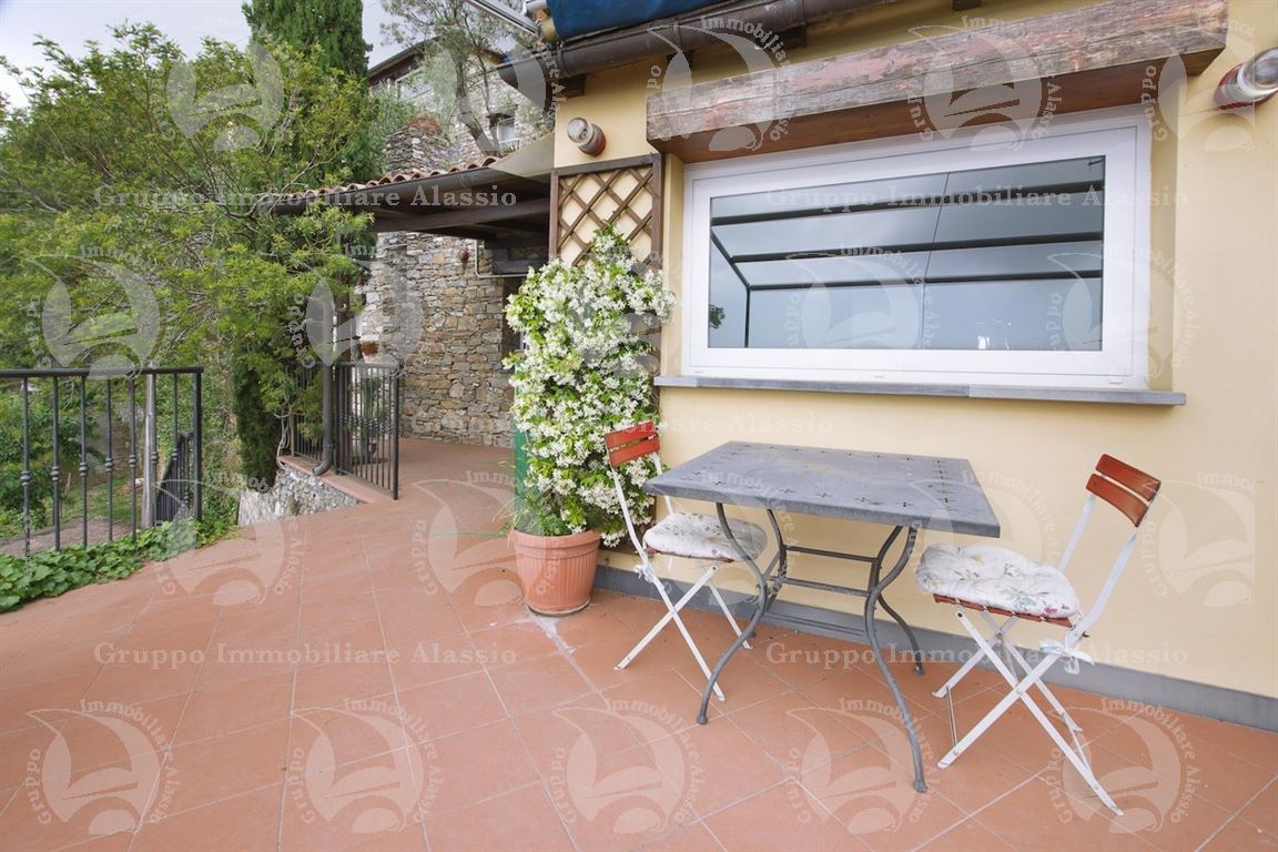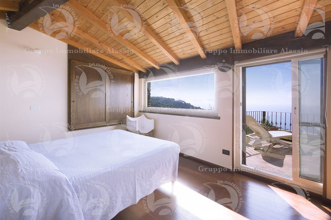 Alassio, on the hillside in the Vegliasco area, offers a multi-level villa. Originally a rustic stone building, it was completely renovated in 1981-82, preserving the original architecture and materials, primarily the exposed stone, completely chipped so that the cement used to reinforce it was not visible. Situated at 402 meters above sea level, it offers a stunning view of the Gulf of Alassio, bathed in sunlight from the early hours of the morning. From every corner of the villa, you can admire the marvelous view of the hillside stretching all the way to the sea. The doorsteps are split slate, the floors are period terracotta in the living area and solid wood in the bedrooms. The bathrooms and kitchens are tiled in Sardinian wax with double sinks and both a bathtub and shower. Three wood-burning fireplaces for romantic evenings by the fire, and a barbecue and pizza oven throughout the villa for carefree evenings with friends. The main villa measures 220 m², plus a 65 m² porch and 60 m² terrace. There is also a small 65 m² two-room apartment with a 30 m² terrace. A 50 m² basement room, plus a 30 m² terrace and a 10 m² terrace. The 600 m² plot of land is landscaped with numerous fruit and olive trees. A large cellar and a 55 m² double garage complete the property.