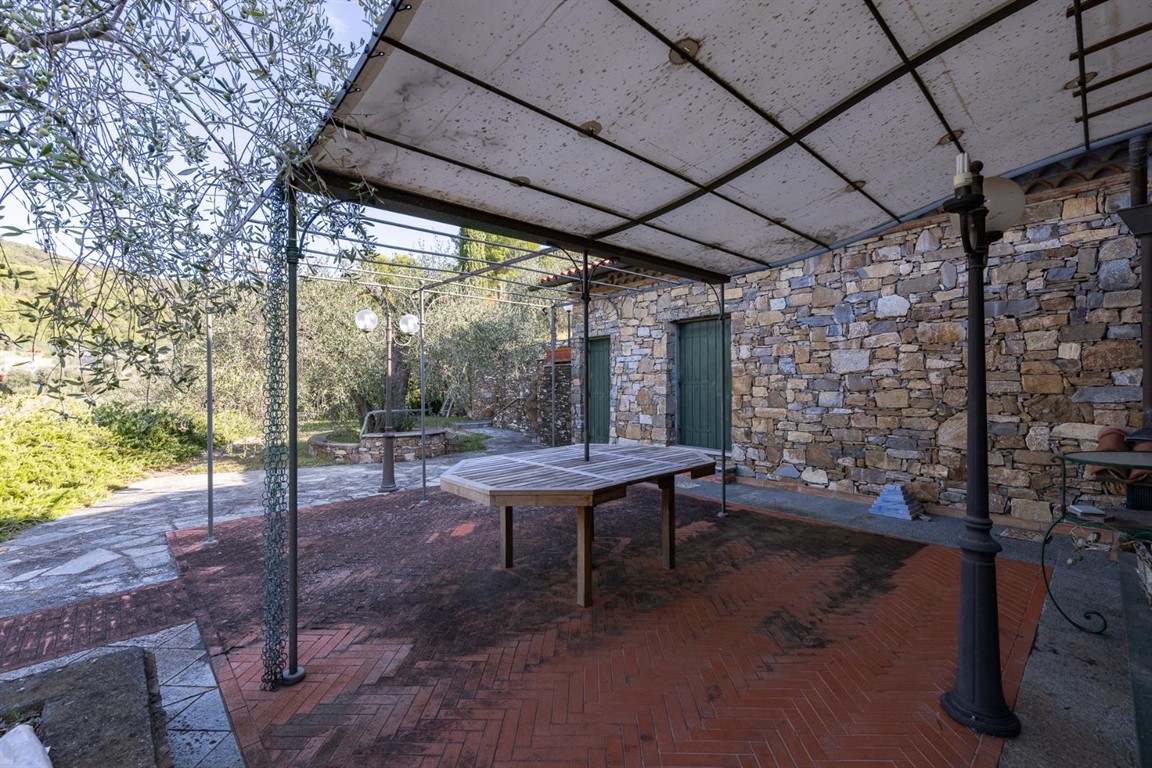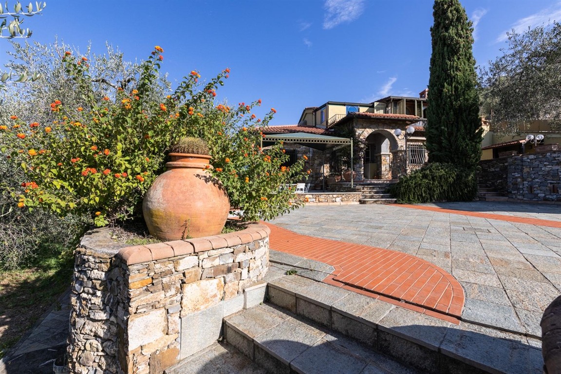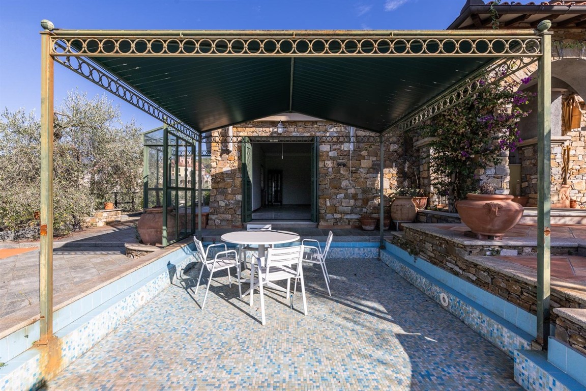 In the San Bartolomeo area of Andora, we offer a traditional Ligurian-style villa with an outdoor veranda and a large garden. The two-story home comprises an entrance hall, dining room, eat-in kitchen, living room overlooking the courtyard, and a bathroom. Upstairs are three bedrooms, one with a terrace and bathroom. The villa includes land with an olive grove, a garage, and a cellar. It enjoys excellent sun exposure. Asking price: Euro 690,000
